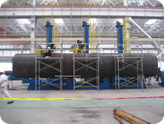我們?yōu)閷Ч芗苁胶Q笃脚_、自升式海洋平臺樁管提供整廠設計制造服務。其中針對導管架平臺的導管、樁管、隔水套管、從鋼板下料、坡口開制、卷板、單節(jié)STT根焊、單節(jié)管內外縱縫焊接、4軸管組對焊接生產線、小直徑管內環(huán)焊接、5軸數控管切割線、大管組對焊接輸送線、廠內外物流轉移傳輸裝備、全套生產線設計提供制造安裝調試服務。