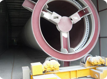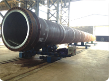 噴漆時工件兩端安裝假法蘭,配套使用特制的噴漆滾輪架,能保證工件表面油漆的完整